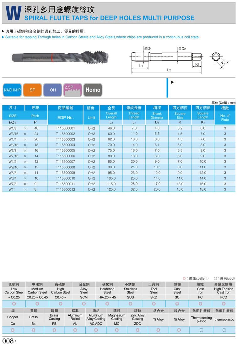 3. 英制螺旋鋼件絲攻006