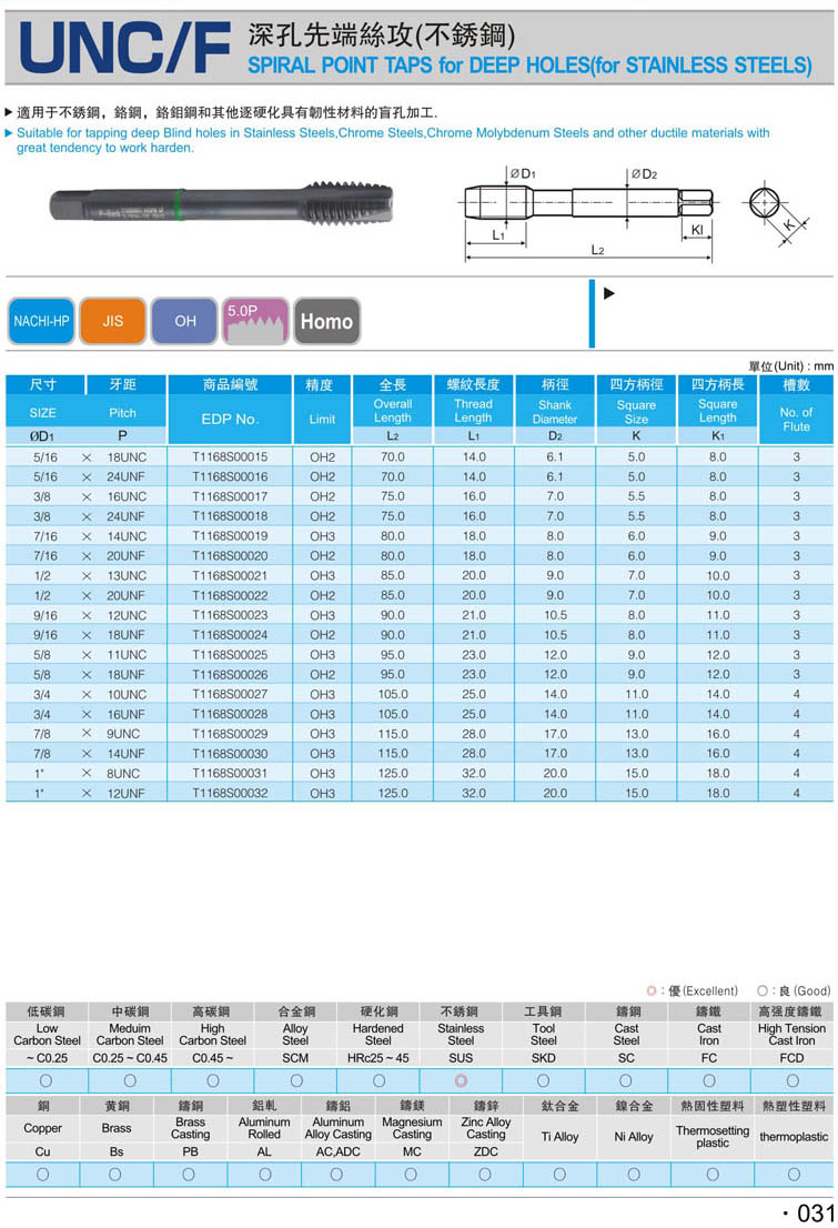 25. 美制螺紋護(hù)套絲攻(螺旋型) 042